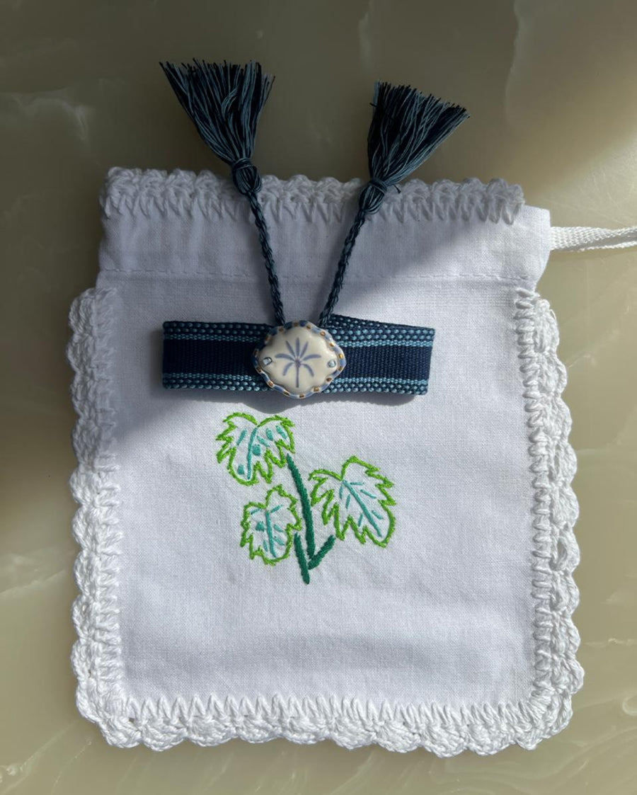 Limited Edition Woven Bracelet with Hand - Painted Ceramic Charm - Navy Blue