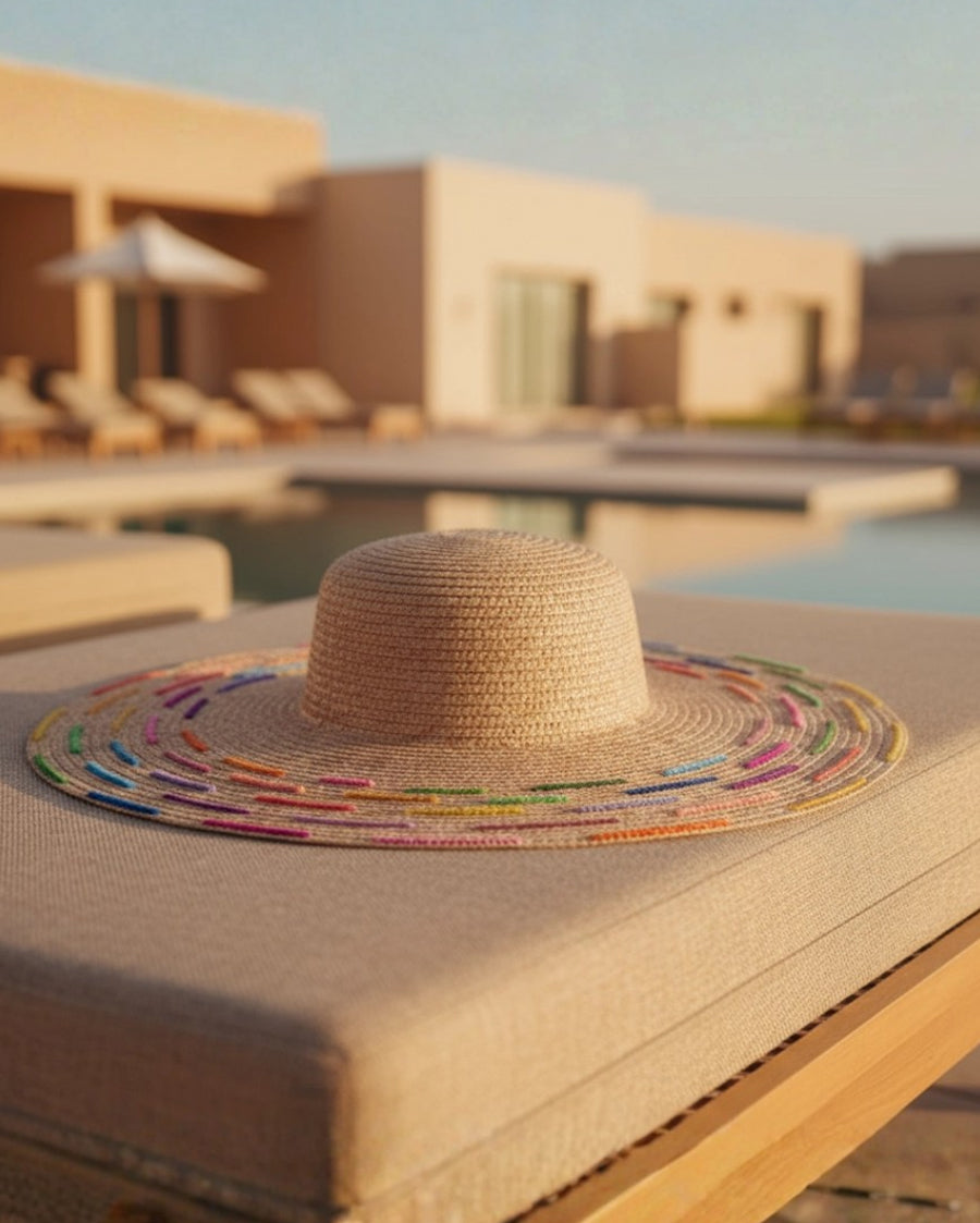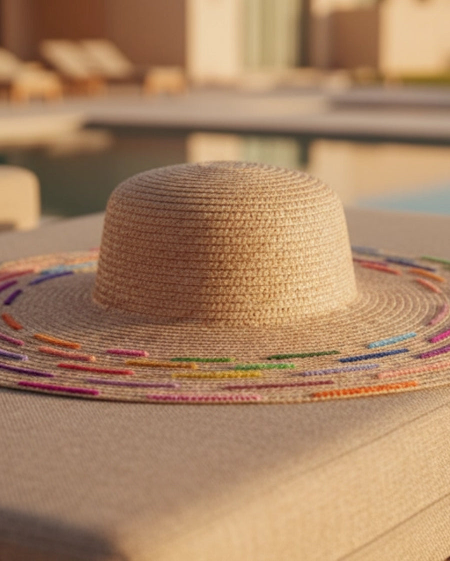Wide-Brimmed Hat with Embroidered Beads - Capucine
