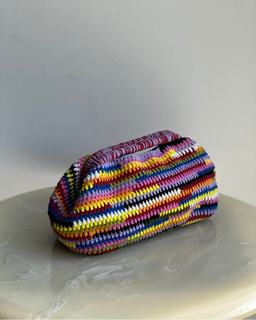 Hand-Crocheted Recta Cotton Bag in Pink Blue & Yellow