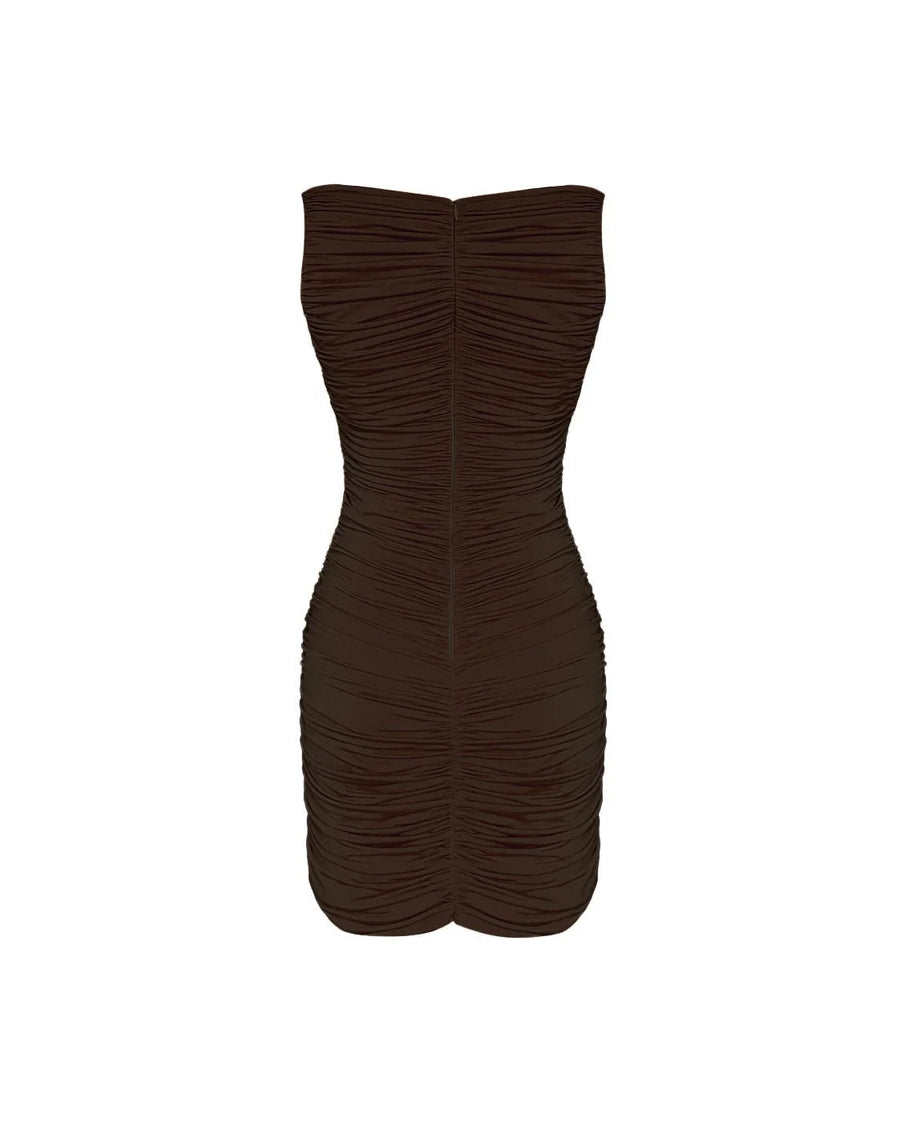 Alora Dress - Brown Draped Cut-out Detail Mini Dress