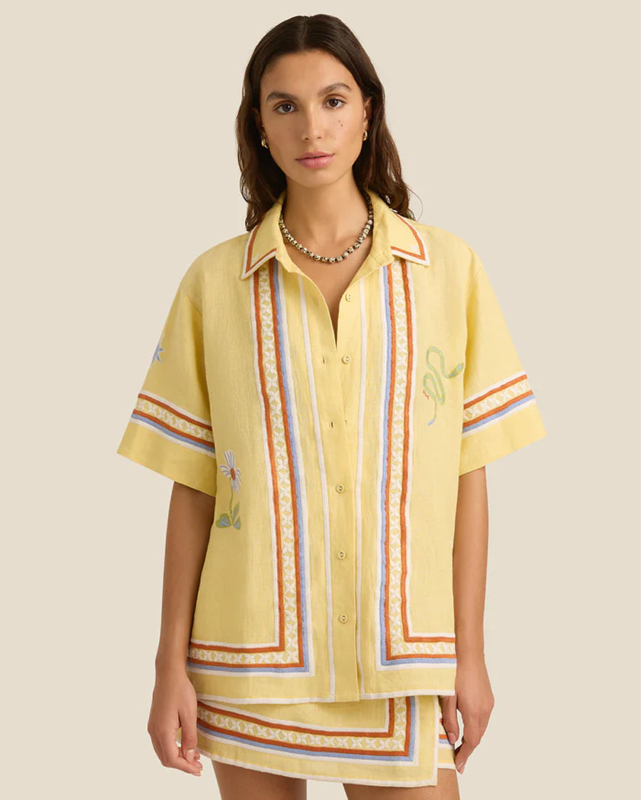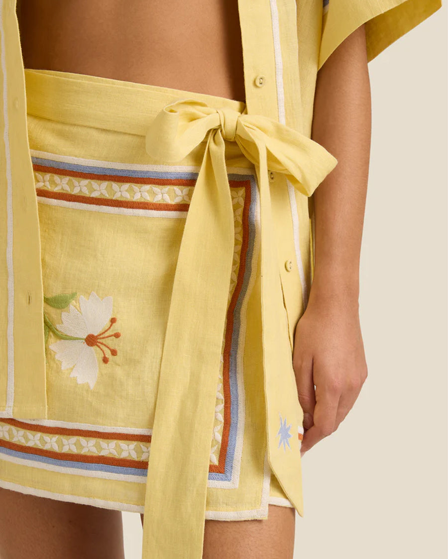 Darcy Shirt and Zuri Mini Skirt Charm Embroidery Linen Set
