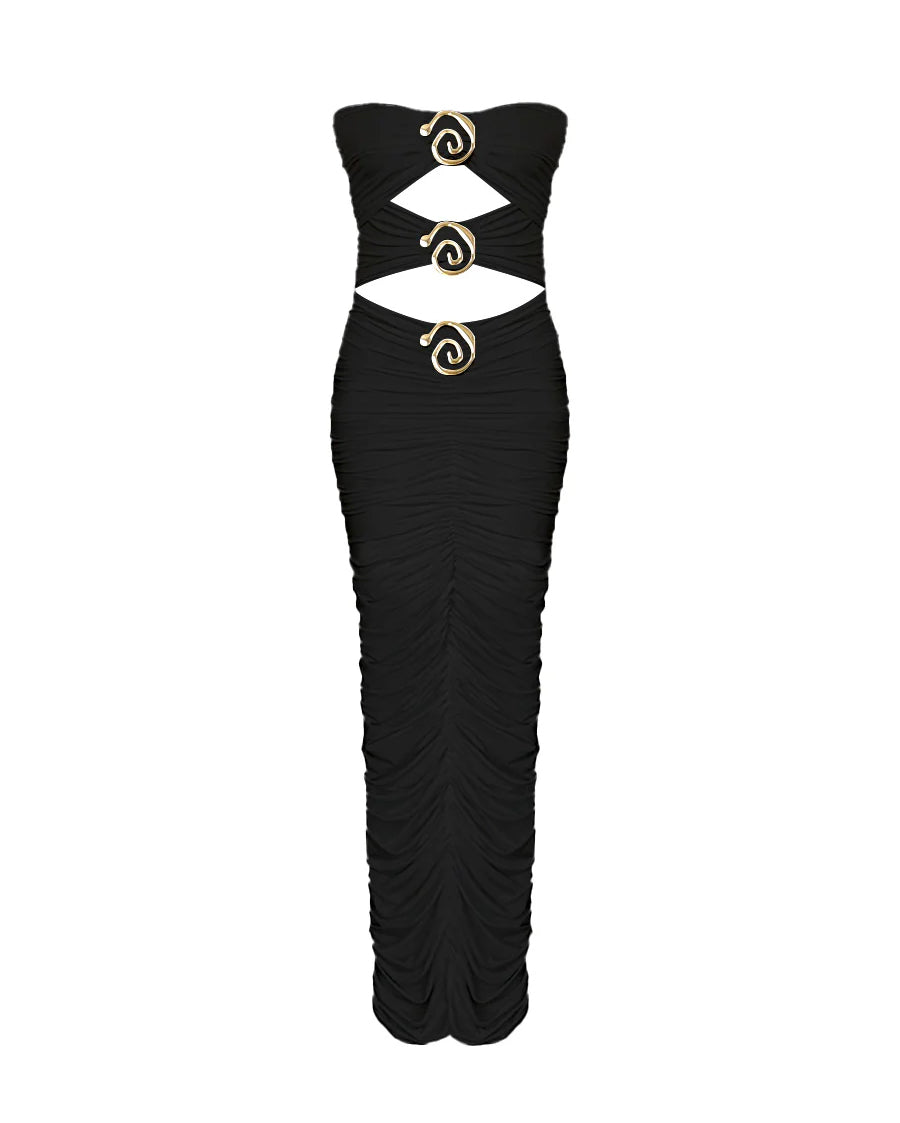 Elysia Dress - Black Draped Cut-out Detailed Maxi Dress
