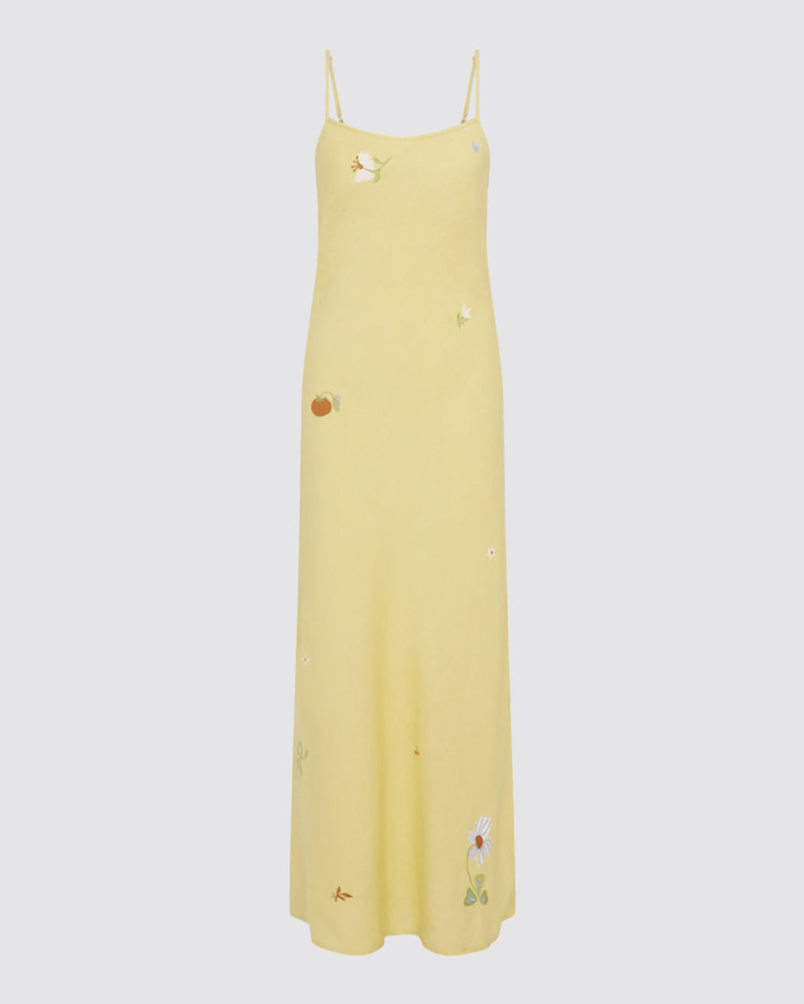 Lana Charm Embroidery Linen Maxi Dress