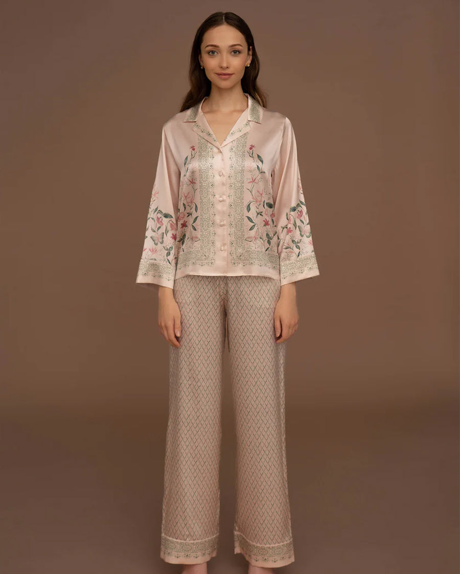 Pearl of Medina Silk Longsleeve Shirt and Pants Pyjama Set - Green