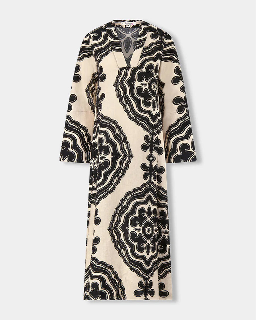 The Niku Cream Collection features a custom-designed print inspired by ancient architectural patterns, blending the classic with the contemporary. The design is brought to life with a rich black perfectly grounded by creamy ivory for a striking and timeless look.